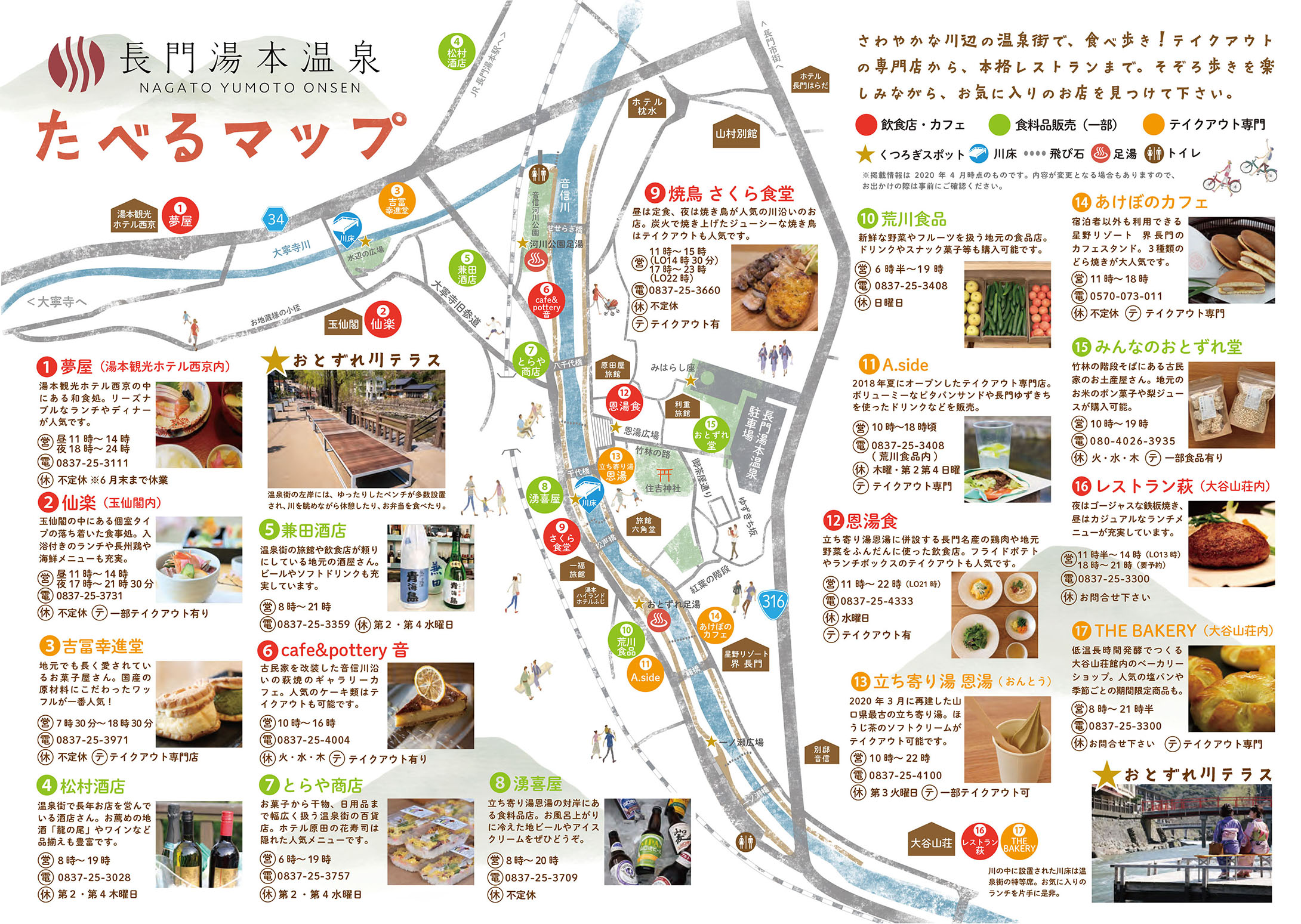 また、食べ歩きに最適の長門湯本温泉食べるマップも下記よりダウンロードが可能ですので、オソト天国MAPと合わせて、ぜひご利用ください。